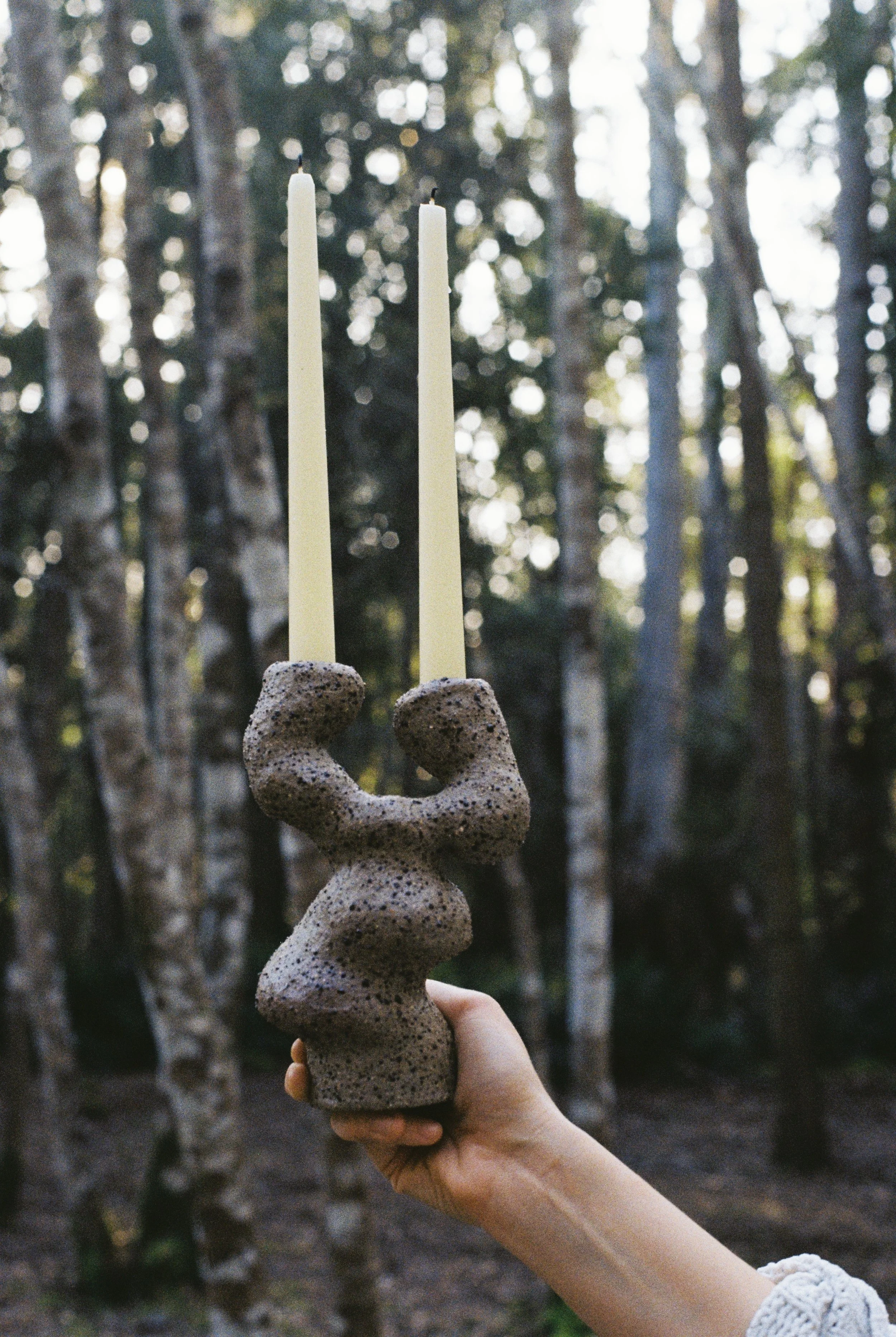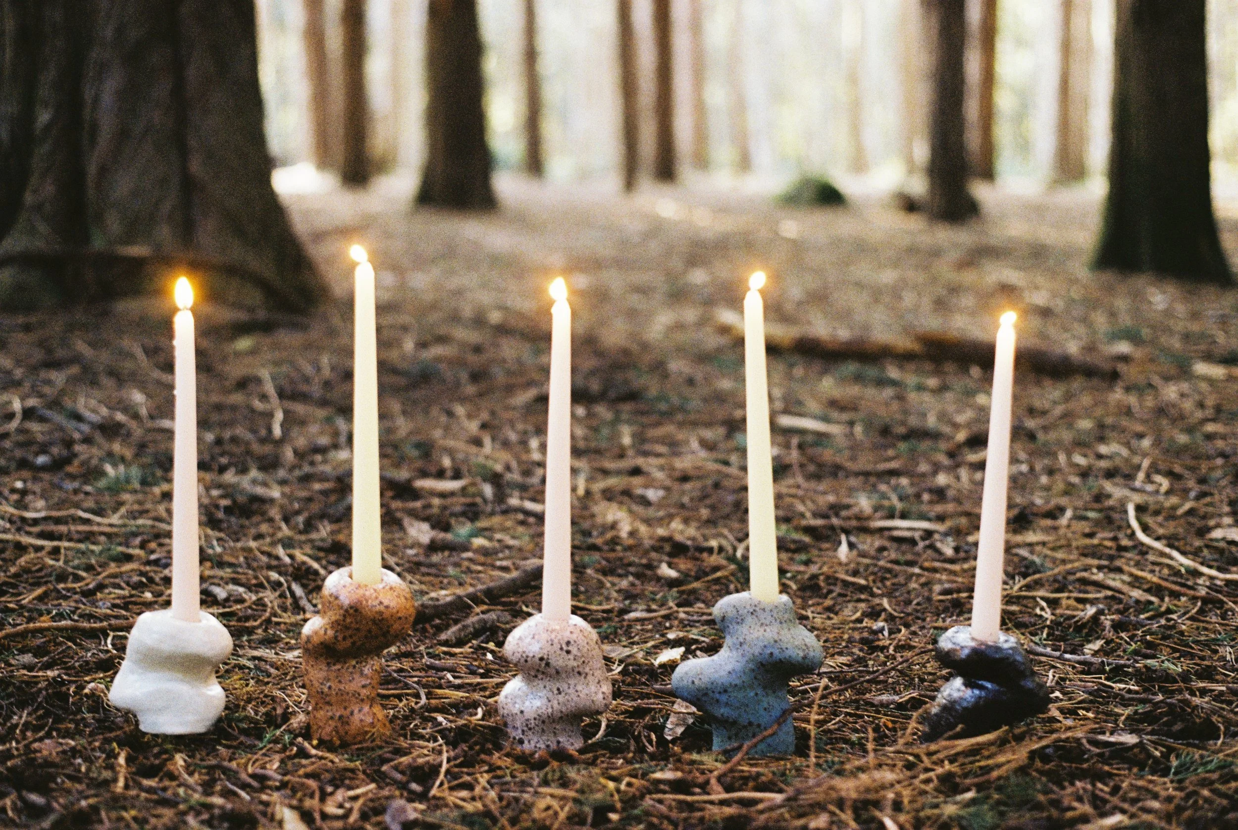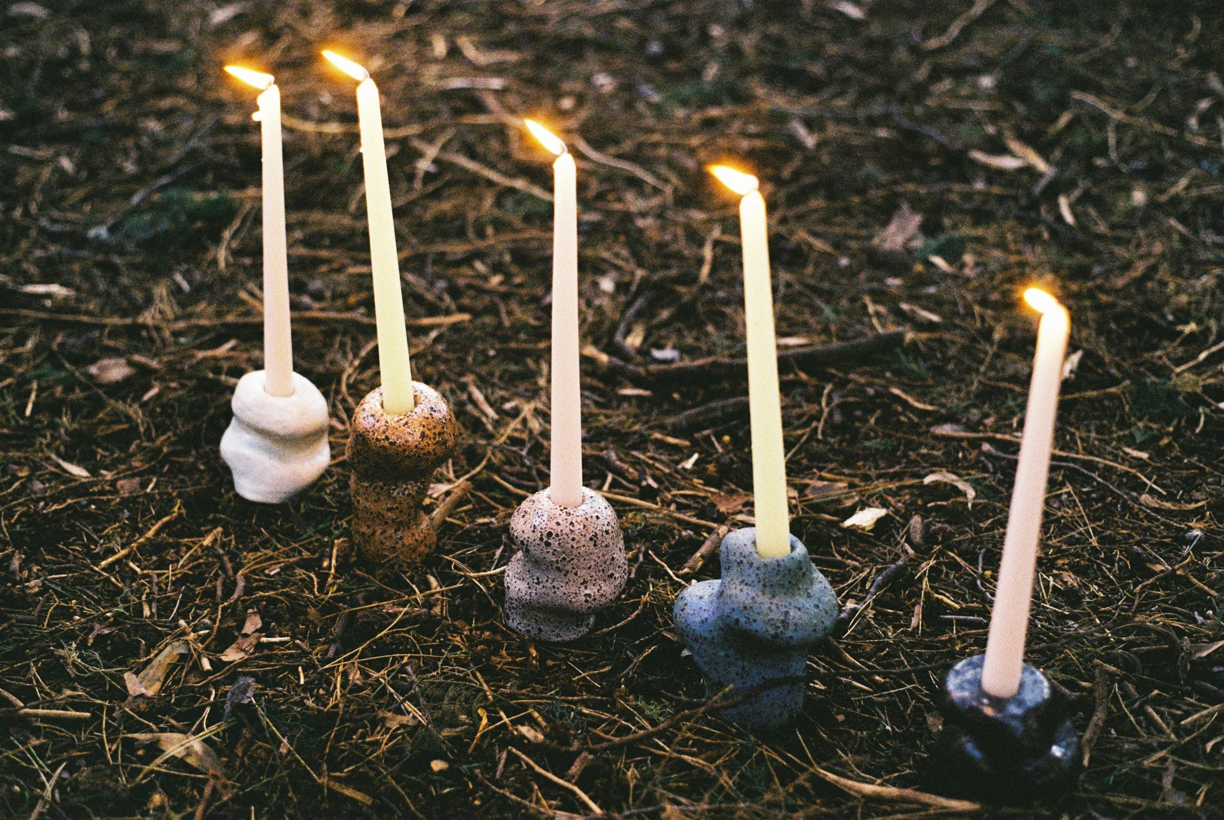 The idea to create a hollow form that is completely asymmetrical but somehow still holds a candle stick straight intrigued me. Slowly manipulating the form coil by coil, if you move too fast the form may collapse, balance is key here. I am pleased with the organic shapes, each unique and most importantly functional.