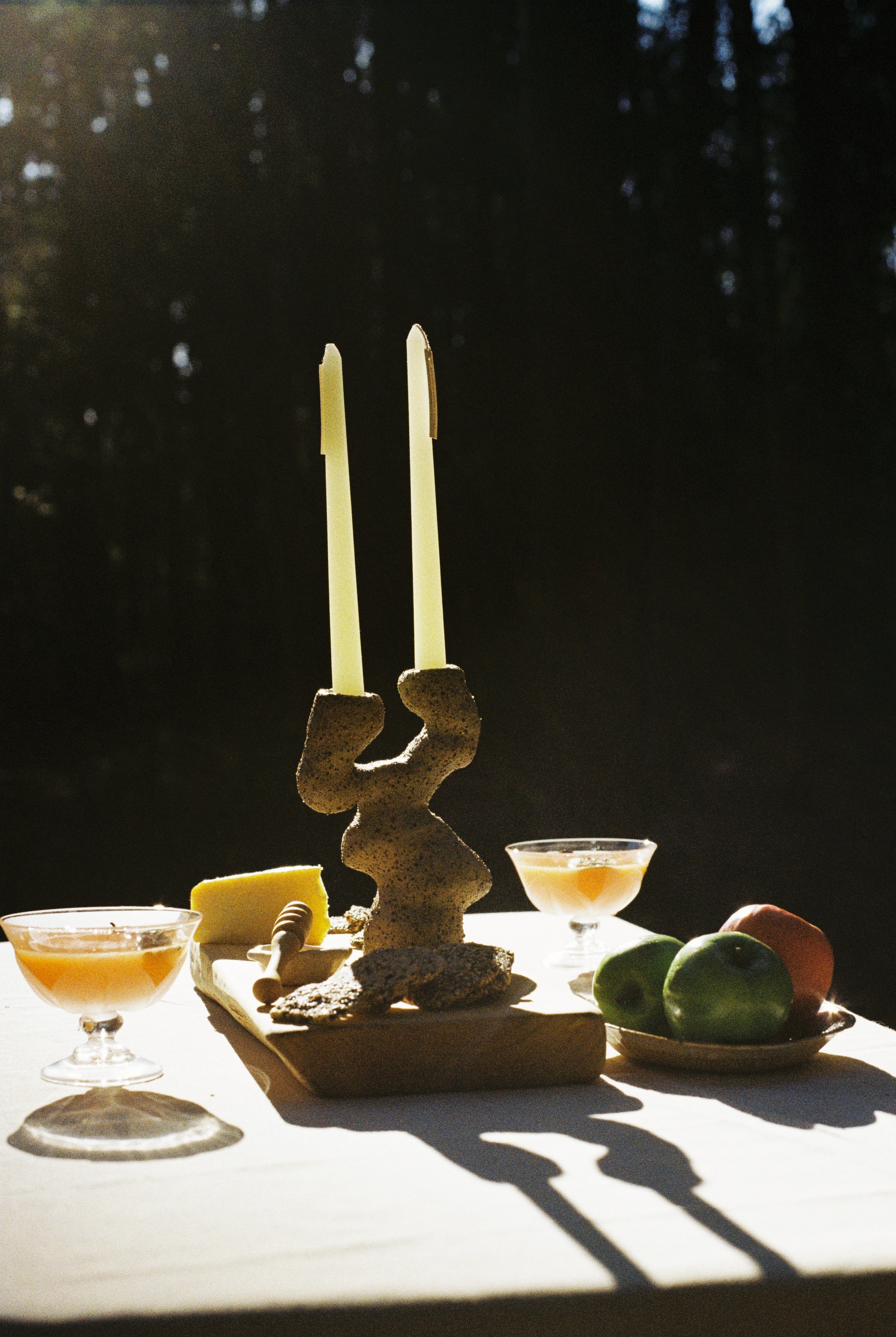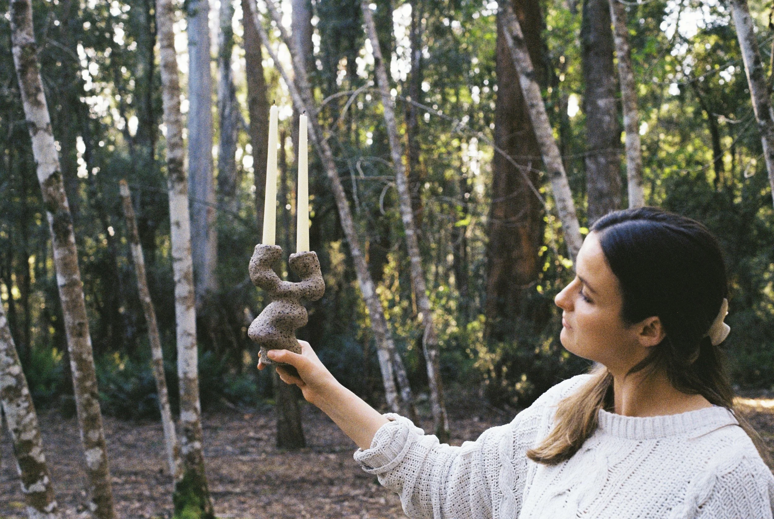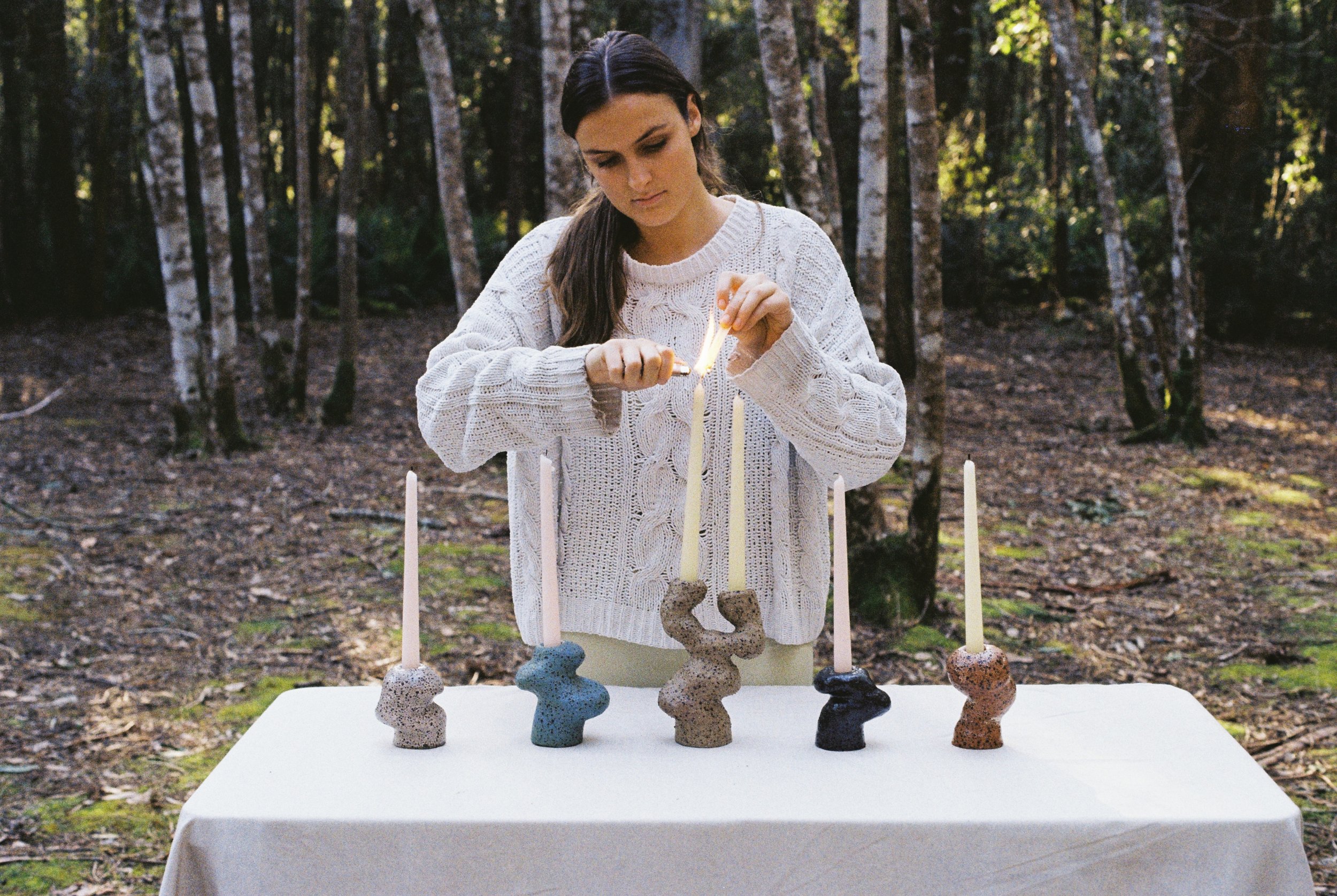 The idea to create a hollow form that is completely asymmetrical but somehow still holds a candle stick straight intrigued me. Slowly manipulating the form coil by coil, if you move too fast the form may collapse, balance is key here. I am pleased with the organic shapes, each unique and most importantly functional.